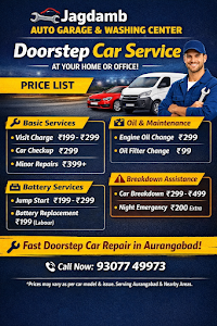 Jagdamb Auto Garage – The leading car garage in Satara Parisar. Our services include: Car Repair & Maintenance: Full engine diagnostics and mechanical repairs. Breakdown Assistance: Quick response for on-site breakdown work. Battery Shop: New battery sales, charging, and replacement. General Service: Oil changes, brake checks, and seasonal tune-ups. Located conveniently in Satara Parisar, we pride ourselves on being the go-to auto repair shop for all car makes and models. Quality service guaranteed. "Car Breakdown Service in Aurangabad" "Doorstep Car Repair Service" "Engine Heating Problem Specialist" "Emergency Battery Jump Start Service" Car Service Station Mechanic Oil Change Service Towing Service Car Battery Store.